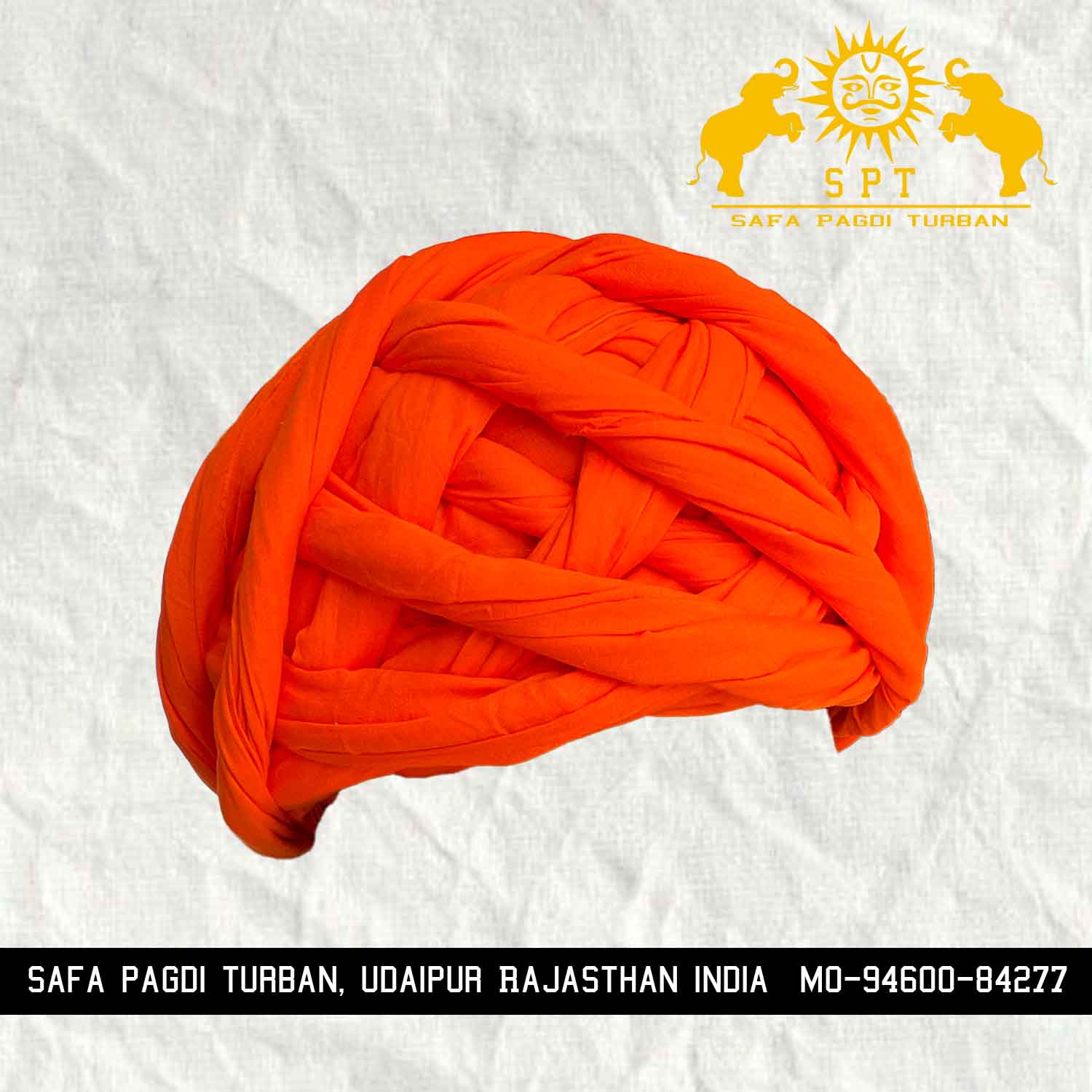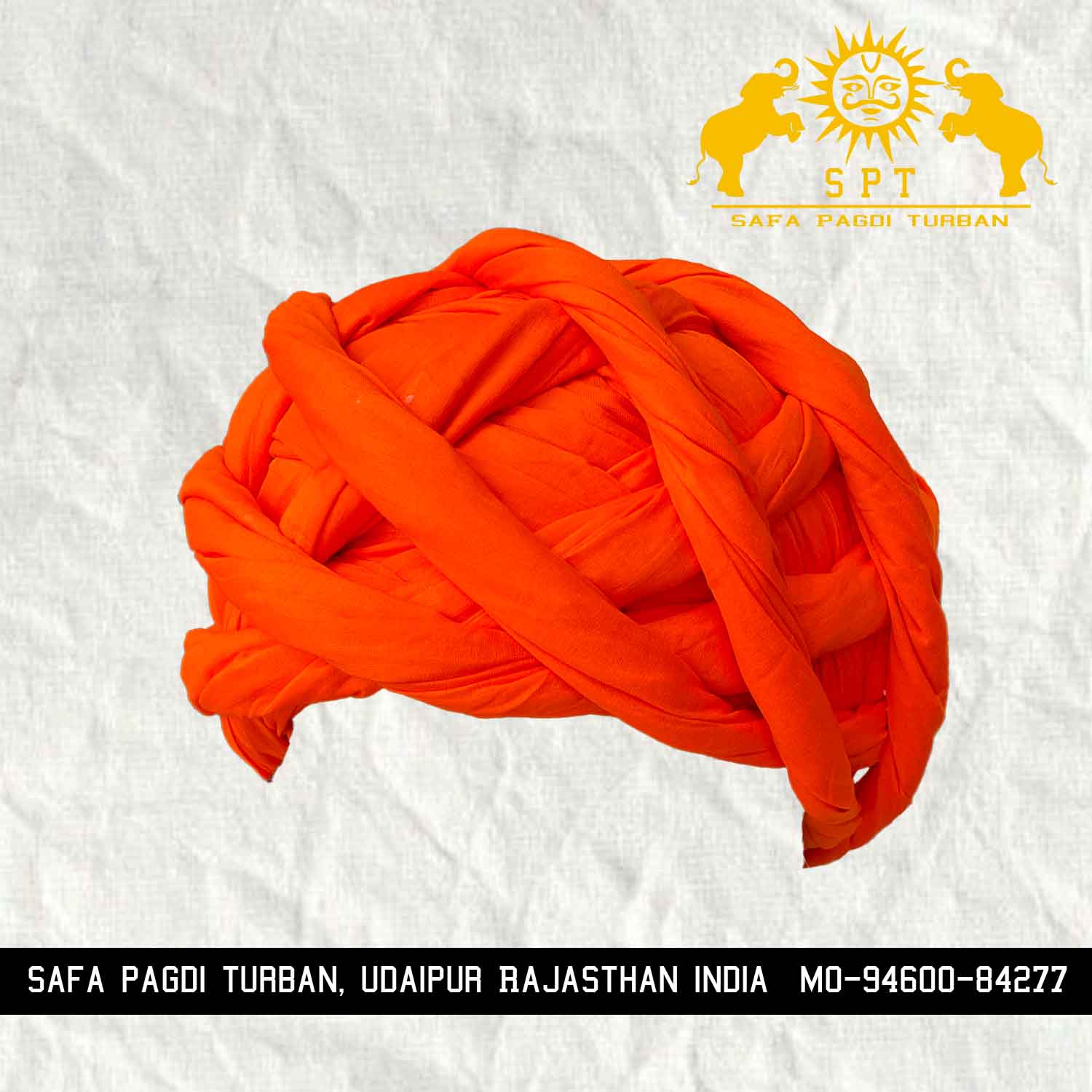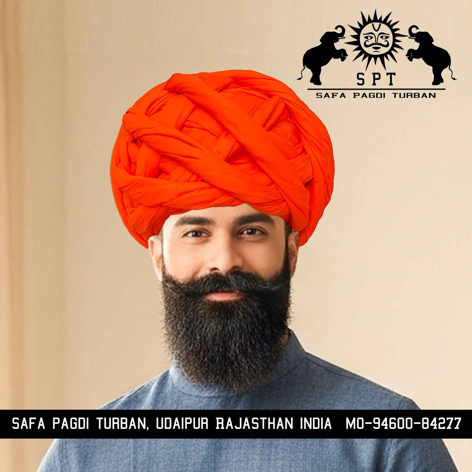 Bring home the tradition and royalty of Rajasthan with this stunning Orange Gol Safa Pagdi from Safa Pagdi Turban